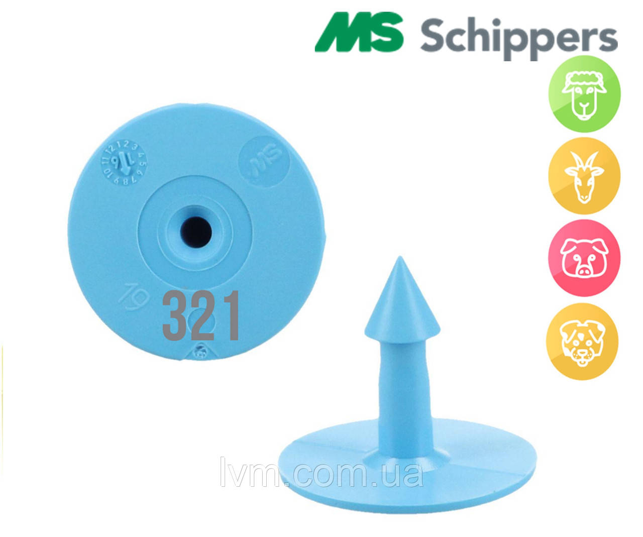 Вушна бірка Кругла в комплекті "МЅ TAG" пронумерована №1-100 (100шт) блакитного кольору , для ідентифікації поросят, овець, кіз, собак, оленів