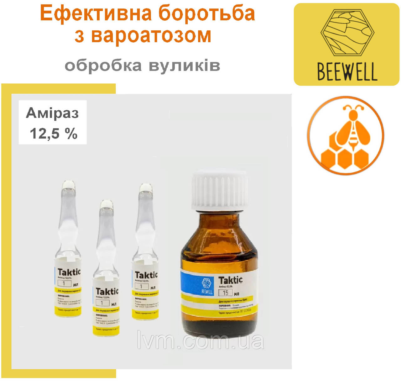 РЕКОМЕНДАЦІЇ: Проводити лікувальні процедури від вароатозу рекомендується двічі: осінню після медозбору і перед зимівлею бджіл при наявності на дорослих бджолах кліщів вароа. У рекомендованих концентраціях не впливає на загальний стан, розвиток та продуктивність бджолиних сімей. Для аерозолю або шприца: 1 мл препарату на 2 л питної води розвести. Розхід робочого розчину 10 мл на 1 вуличку.